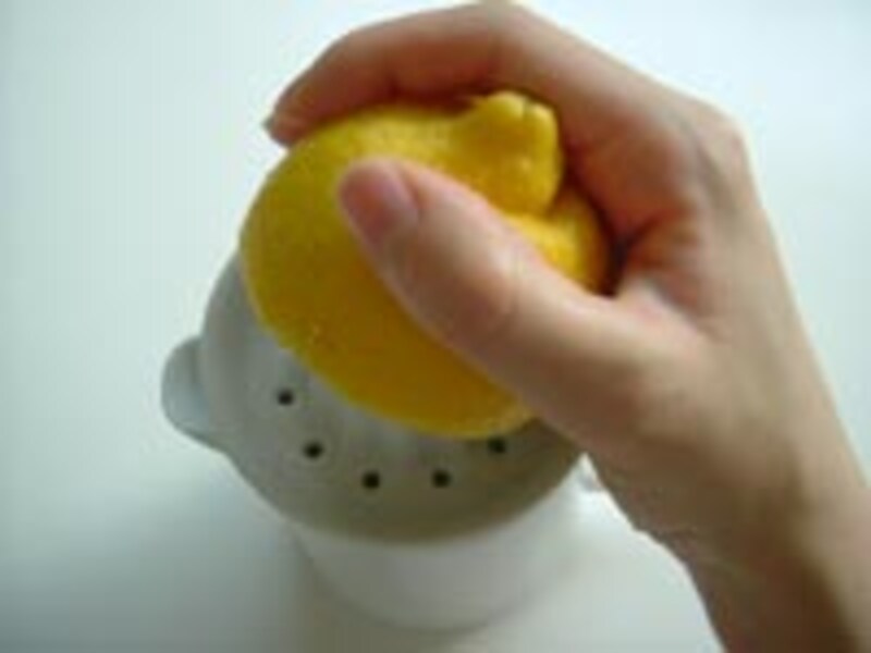 ◆4◆ オレンジとレモンを絞る。 パンチボールに「1」の氷を入れ、冷やした材料(紅茶、発砲水、果物、ジュース)を全部入れる。 |