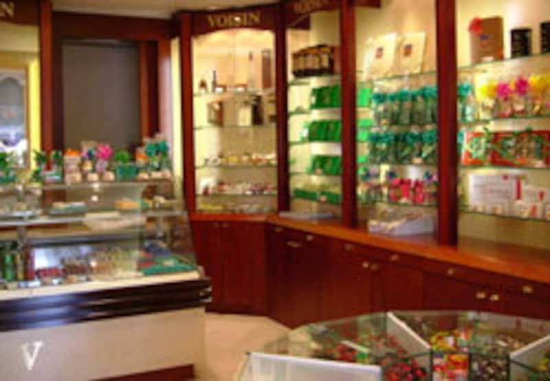 | フランス第二の都市であり美食の街リヨンにある、1897年創業の お店「VOISIN」をご紹介します。 ドラジェやショコラ、そしてコーヒーが売っている“街によくあるお菓子屋さん” のようですが、「クーサン・ド・リヨン(Coussin de Lyon)」という郷土菓子で 有名な老舗店です。 この「クーサン・ド・リヨン」は訳すと「リヨンのクッション」。 鮮やかな緑色のクッションのような形をした大小のパッケージが店内のいたるところに並んでいました。 |