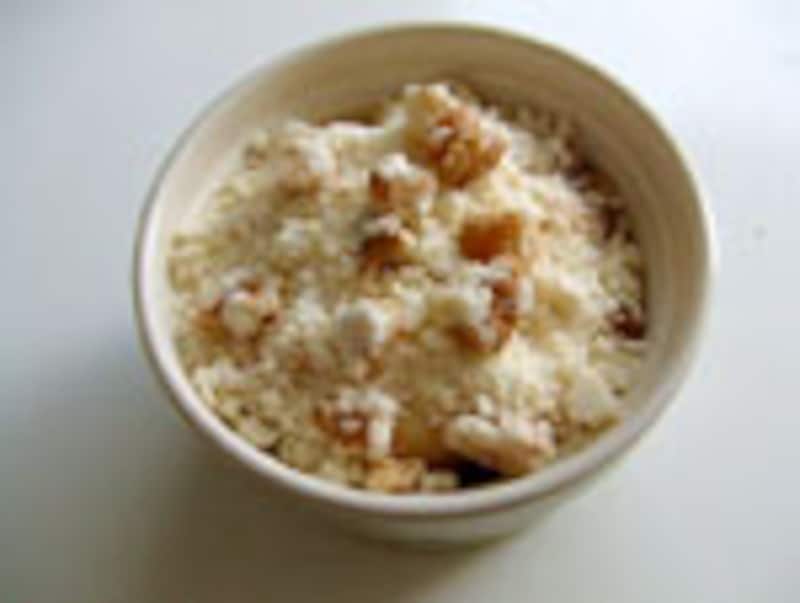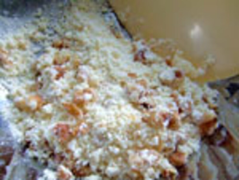 ◆3 ◆ 粗めに切ったクルミを加えざっくり混ぜ合わせる。 |