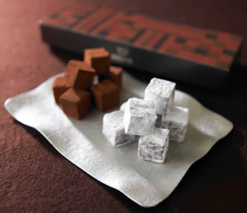 シュガーパウダーをまぶした真白な「シトラス」と、ココアパウダーをまぶした「キャラメル」の色のコントラストも美しく、今年の新作の生チョコレートに注目です!