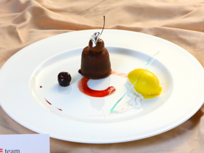 ・皿盛デザートはキッチンから、そのまますぐに審査席に運ばれ試食される。
