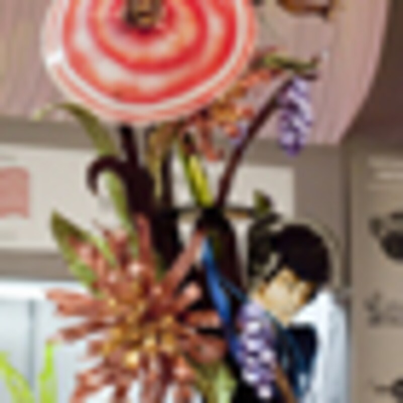 アメ細工:構成はパスティヤージュ20%、シュクル・ティレ(引きアメ)30%、シュクル・スフレ(吹きアメ)20%、残り30%は自由とする。60cmX40cmの土台にのせて展示。高さ125cm以内。