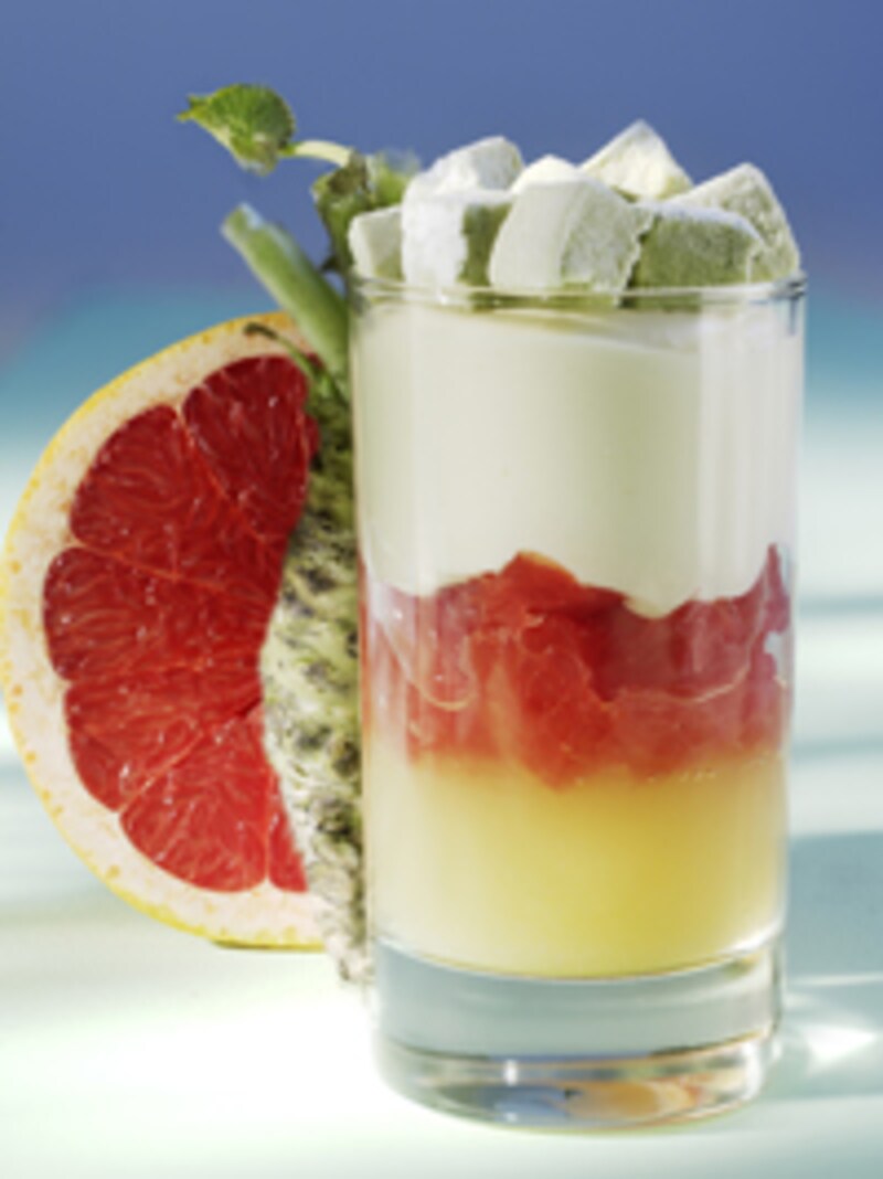 | エモーション デリシューズ(わさび)¥945(抹茶のギモーヴ、わさびのジュレ、わさびのマスカルポーネクリーム、グレープフルーツの実とコンフィ)*6月27日より発売予定 |