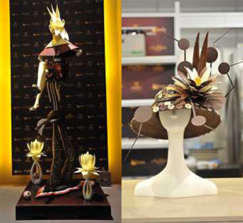 | チョコレートのピエスモンテ(左)/チョコレートの帽子(右) |