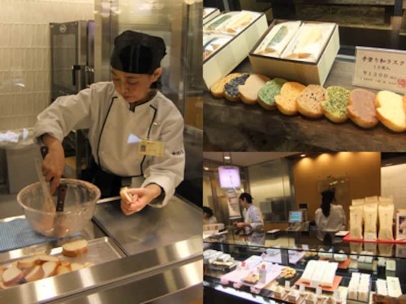 またエキュート東京では、1枚1枚丹精込めて手塗りしたラスクを店内厨房で時間限定で焼き上げます。世界初の和ラスクの実演販売のお店です。
