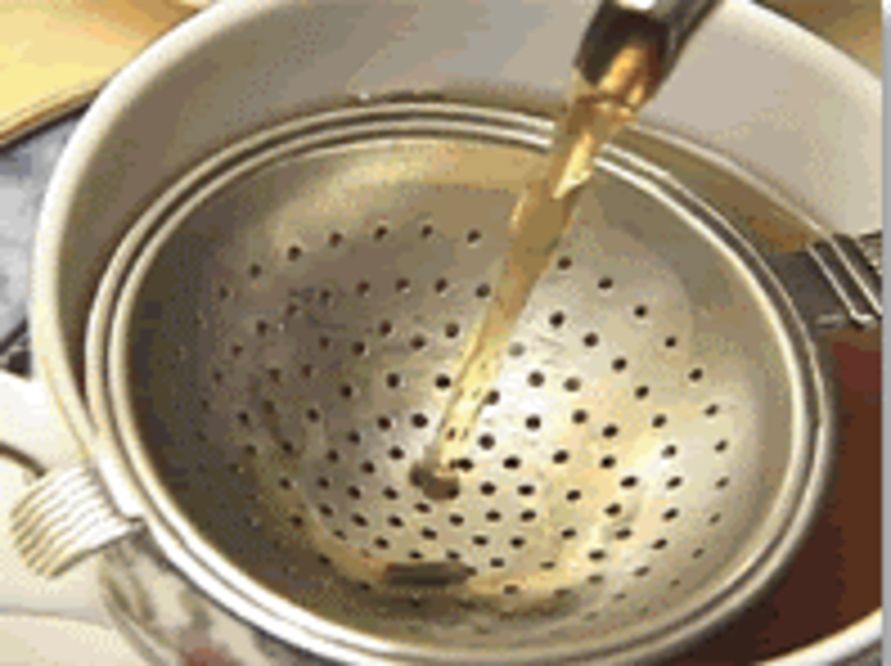 | ストレーナーのなかで、注がれる紅茶に茶葉が泳ぐ |