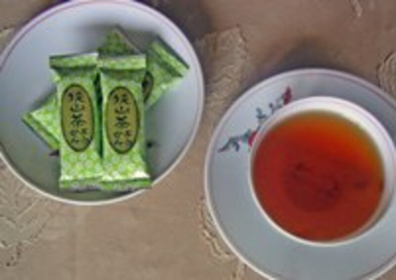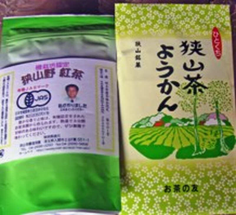 | 狭山茶がたっぷり使われた羊羹のなかに餡が入っています さやまの紅茶をストレートで一緒に味わうのがオススメです |