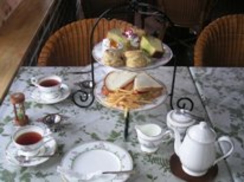 | アフタヌーンティーセットは2人分、1800円。スコーン、サンドイッチ、ケーキ、紅茶などが含まれます。 |