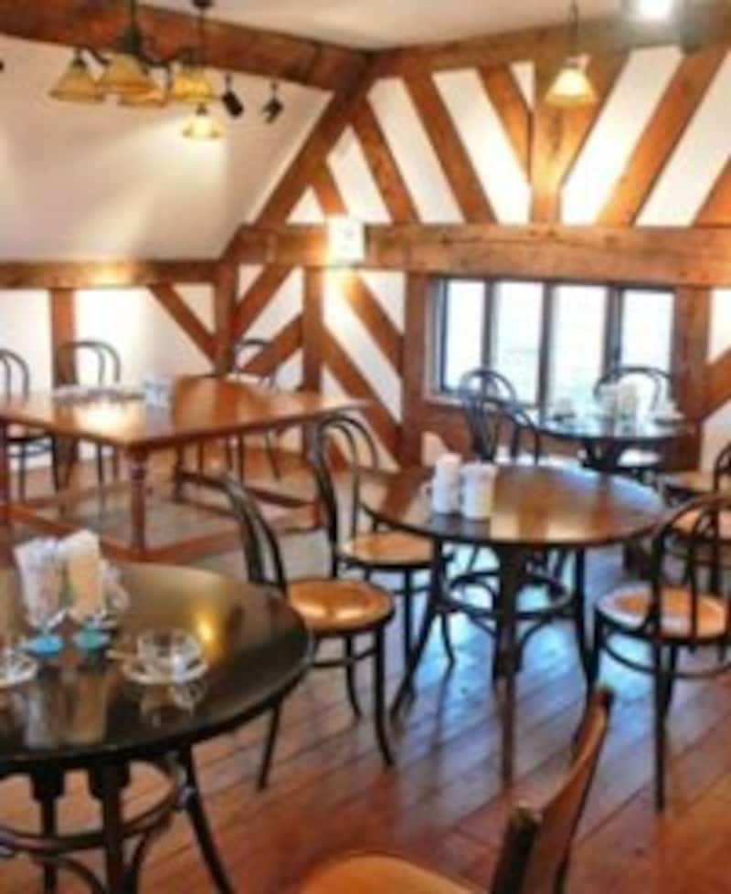 パーマーズファームもまたイギリスから取り寄せた建材を使って建てられており、中でお茶をすると中世風のなんともいえぬノスタルジックな雰囲気に浸ることができます。1階席は二つの部屋があり、入り口に近いほうは壁に沿って設置されたカウンター、小さなテーブルがあり、その奥には3つのテーブルのある部屋。ゆっくりするなら奥の部屋のほうが落ち着けそう。