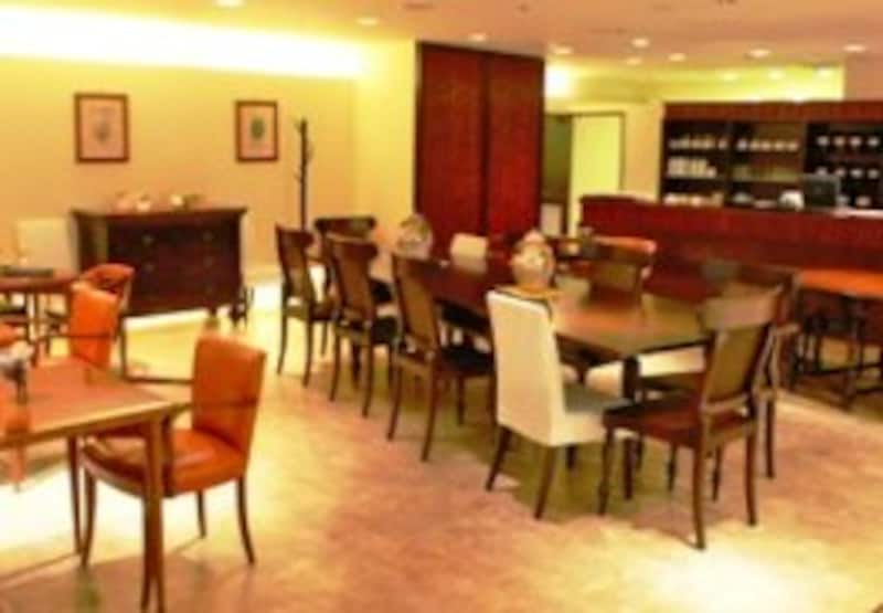 | ギンザ・コマツ3階のティーサロン。ハニーやハーブリキュールなども販売。 |