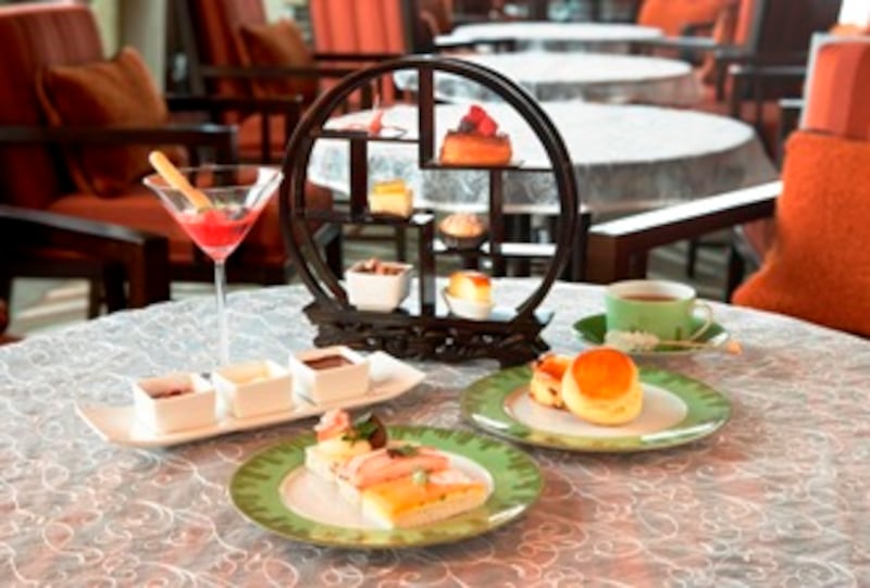 テーマは「自然」そして「森と水」。ラウンジではソファには竹やぶ、小枝、壁にはくぬぎの葉、カーペットには水面(みなも)が表現されており、緑と薄茶色のアースカラーで落ち着いた雰囲気です。ラウンジでいただくマンダリン・オリエンタル流の東洋色がふんだんに表現された優雅なアフタヌーンティーをご紹介しましょう。