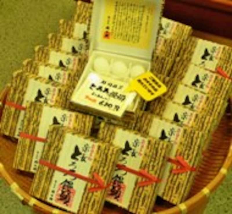 | とろろ饅頭。甘さ控えめのこしあん。一人で何個も食べられそうな軽さが人気。 |