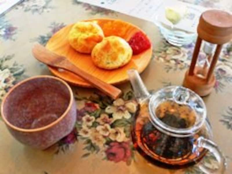 | 小さな湯のみ1杯から自分でいれていただく紅茶スタイルも人気。 |
