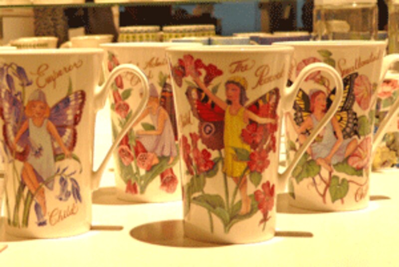 特に目を惹いたのは妖精たちと花のエメリーマグ。“手の五本指でがっしりと握って、大好きな紅茶をがぶがぶと飲む”のがイメージできそうなほどに持ち手部分が大きく、そして大容量。日本で一般的となっているマグよりは一回りくらい大きい。