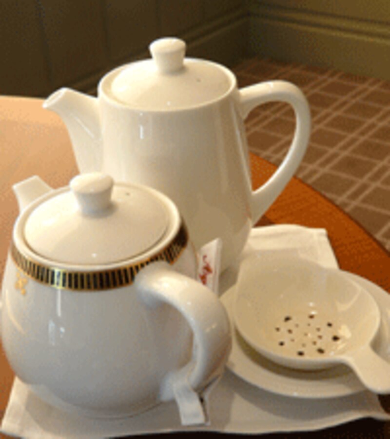| まずは入れたての紅茶を1杯からスタート(写真は一人用)。 |