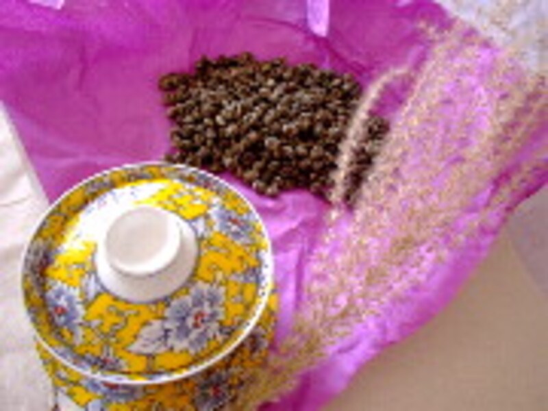 そのほかにも、茉莉花繍球というまるいボール状の茶葉を「月」に見た立てて一粒蓋碗に入れておくのも趣きがあって良いと思います。他にも、茉莉梅花、茉莉花牡丹などの一工夫してある茶葉を使っても面白いでしょう。