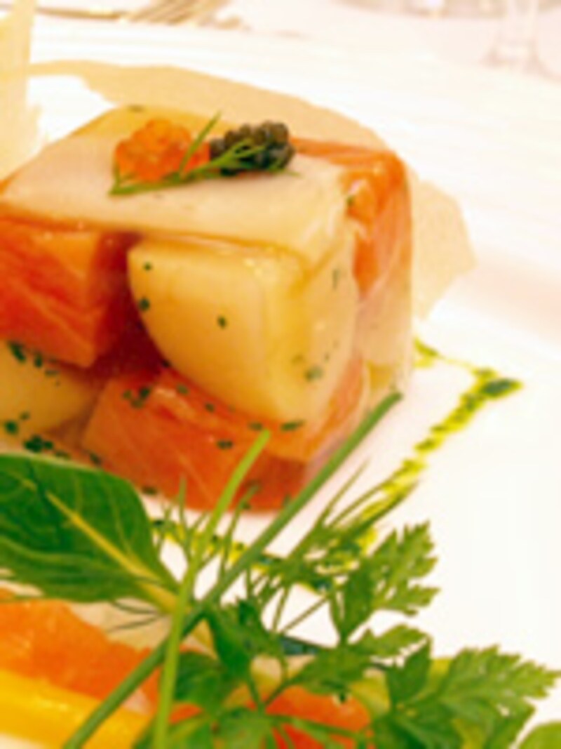 | 爽やかな新酒は、例えば魚介のゼリー寄せと |
