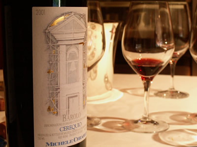 この料理と合わせたのがバローロ「チェレクイオ」1998年。試飲段階からすでに旨さが際立っていた。まずその色合いの美しさが目を引く。濃すぎず深みのあるオレンジレッドである。香りの中にチェリーやラズベリーなど色の濃い果物の風味があり、たっぷりとボリューム感のある味わいに、酸味も穏やかに利いている。芳香の中にふわっと皮革やミントの香りが感じられる長い余韻の後口…いやこれは、圧倒的な存在感だ。