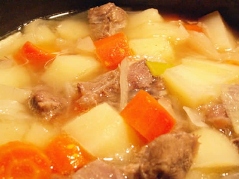 2時間煮た段階で、野菜はすっかり柔かく、硬い肉でも食べられるくらいになるはずだ。煮込みを続行しながら、塩と胡椒を少しずつ入れて、スープらしい味に整える。もっと味の濃いのがいいって?スープの素を少々入れるか、塩味を強めにするといい。![]() |