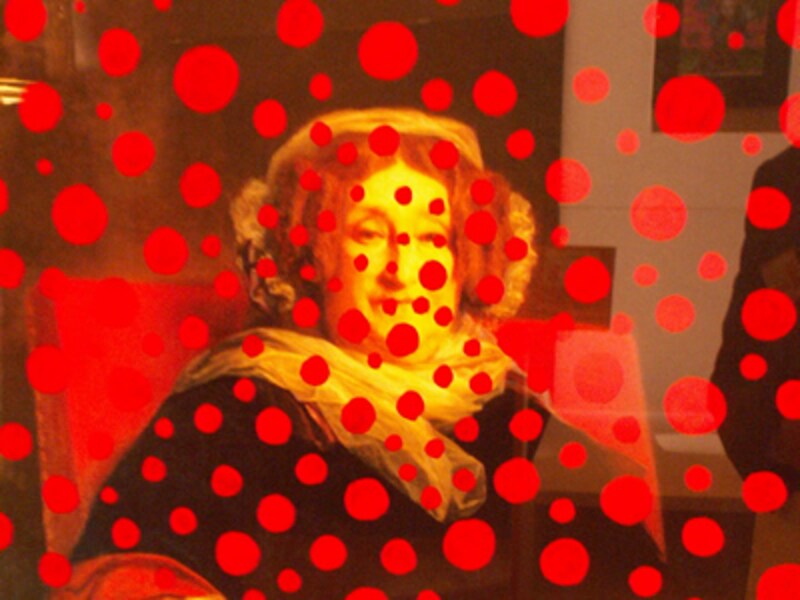 次は前衛芸術家・草間彌生の『水玉により自己消滅したマダム・クリコ』。この人の大小さまざまな水玉に対するオブセッションはおなじみだが、マダムの肖像画が額縁に収まった全面から、真っ赤で手描きの生々しい水玉模様でもって埋め尽くす様子は、異様で微妙だ。