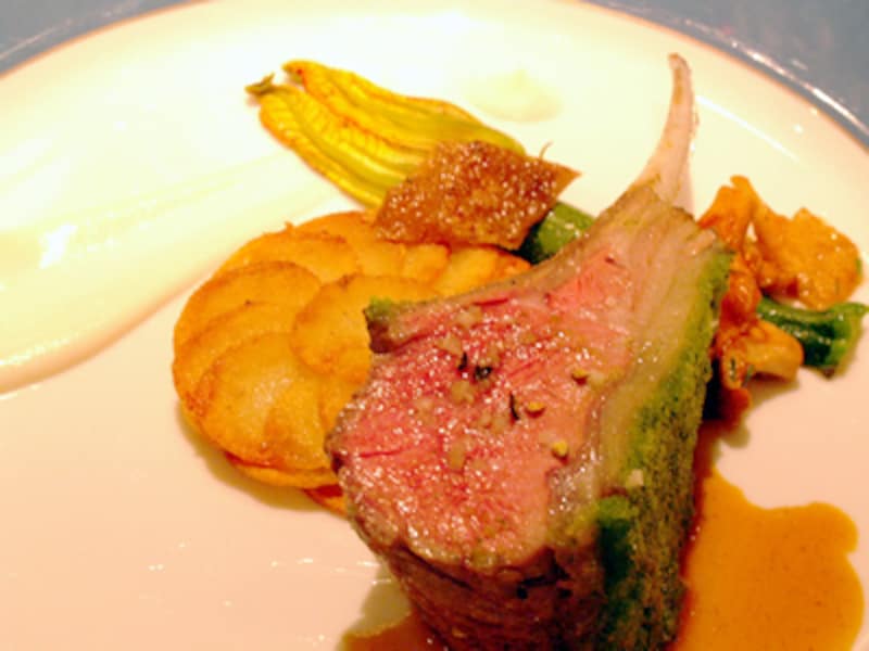 皿にどんと乗った分厚い身を、大きく切り取って口に放り込む。柔かいが適度な歯応えがあり、噛みしめると仔羊の香り高い肉汁がたっぷり染み出して口中を潤おす。花ズッキーニをコリコリと食しては、肉をワシワシ。ジャガイモのグラタンをカリカリ食べては、肉をワシワシと頬張る。そこには天才と秀才、両タイプのワインが控えている。どちらを味わっても、秀逸な味と香りのつむじ風が口中を吹き抜けるのである。
