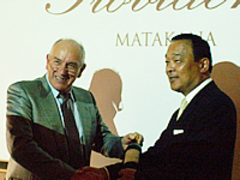 個性あるワインを求めて三国ワインの今井潤社長今回は新しい輸入会社による新ヴィンテージの発売に際して来日した。三国ワインの今井潤社長はプロヴィダンスを「キウイー・マジック」(ニュージーランドの魔法)であり「南半球のル・パン」(シャトー・ル・パンはボルドーでも最高レベルの価格をつけるワイン)と紹介。ヴルティッチ氏と今井氏の握手同社の上級ワインブランドとして、中長期に渡って売り込んでいくための取扱いであるとしている。ワイン生産が企業化していく傾向が強い現在、ヴルティッチ氏という個性がはっきり出たワインは貴重なのである。→ Page 1: 「神の意思」を味わう→ Page 2: 弁護士が造るワイン→ Page 3: 個性あるワインを求めて→ Page 4: 入念なブドウ栽培→ Page 5: 瑞々しい調和→ Page 6: 飲んで楽しいワイン前のページへ1234…6次のページへ