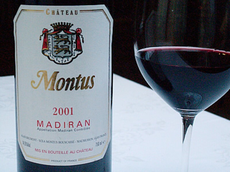 この大胆な料理に合わせるなら、獣の香りと山菜・野菜のほろ苦さに通じるワインか。シェフのおすすめは、フランスは南西部のマディラン地区で造られるワインの中でもモダンな『シャトー・モンテュス』2001年である。ブドウ品種は地元特産のタナに、カベルネ・ソーヴィニヨンを2割加えている。動物的な香りとほろ苦さの両方が瓶熟成で融け合い、さらにレーズン的な果実味やカベルネ種の上品さも加わっているワインだ。