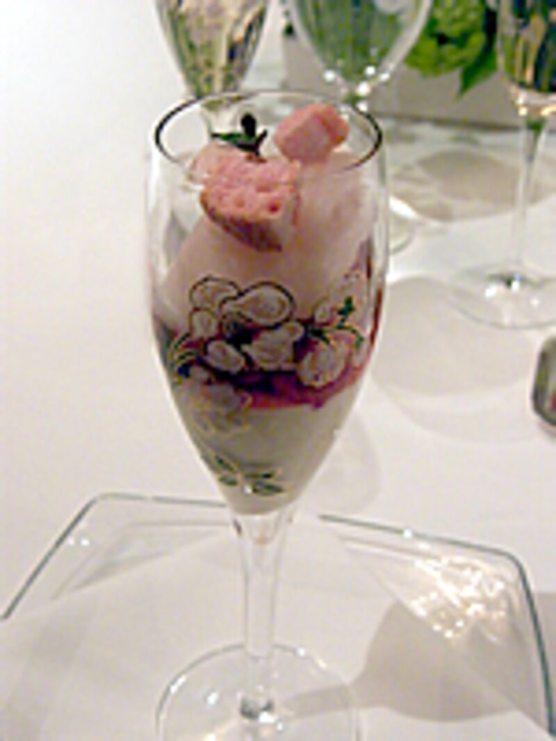 | 『ビスキュイ・ローズ・ド・ランスのムース、ロゼ・シャンパンのソルベとフリュイ・ルージュをあしらって』 |