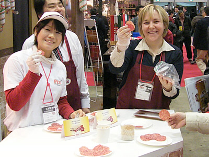 その中にあるハンガリーの大手食肉会社「ピック サラミ ハンガリー」(一般にピック・セゲド Pick Szeged とも呼ばれる)のブースで試食した、同社が製造している「ウィンターサラミ」(熟成中に表面に白カビを生やすのが特徴)などの加工品がなかなか旨かった。ここで、昨年からピック社が日本に輸入しているある特別な豚肉について話を聞くことができた。