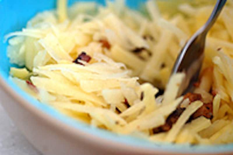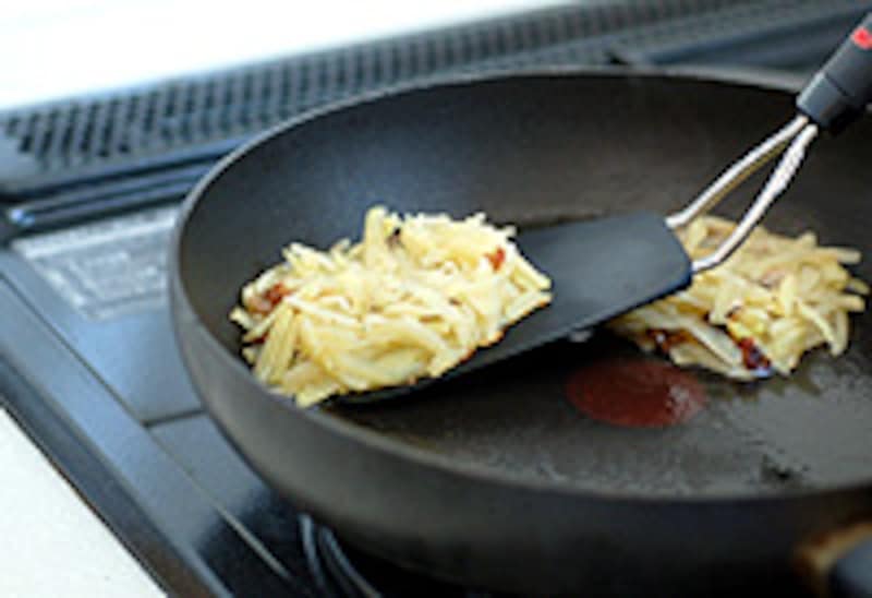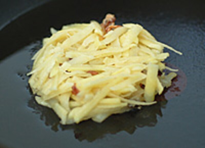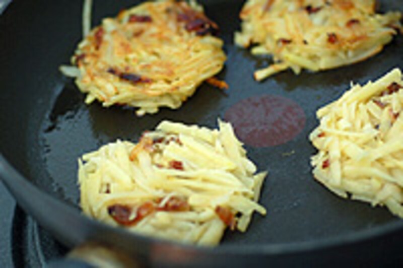 ジャガイモのせん切りをフライパンでこんがり焼いて作るシンプルなスイス料理。とろけるチーズをのせたりソーセージを添えたりしてアレンジが楽しめます。トモノショウコさんにレシピを教わりました。