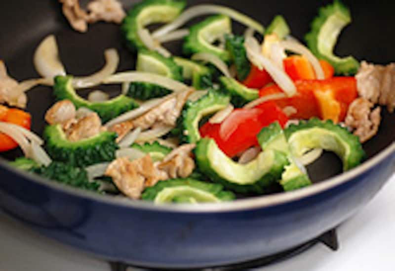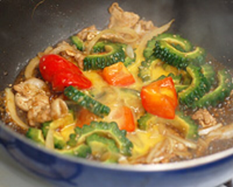 ゴーヤと豚肉のおいしさをタマゴが優しくまとめ、糸トウガラシでぴりりとアクセント。夏の健康レシピを表参道の日本茶カフェ「茶茶の間」に教わりました。