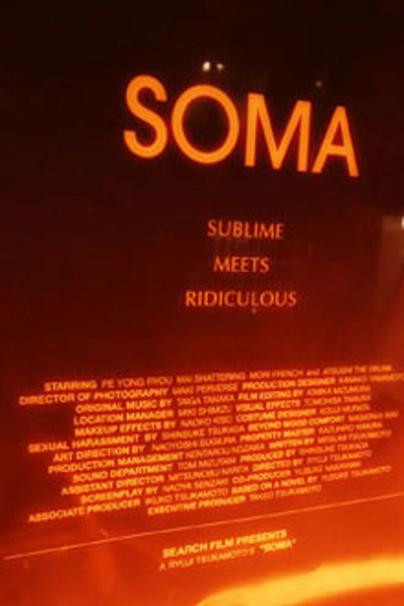 映画をモティーフにした遊び心の最たるものは、お店の外に飾られたポスター(写真右)。映画のポスター仕立てになっており、STARRINGのところにSOMAで働く各スタッフの名前が芸名でクレジットされています。