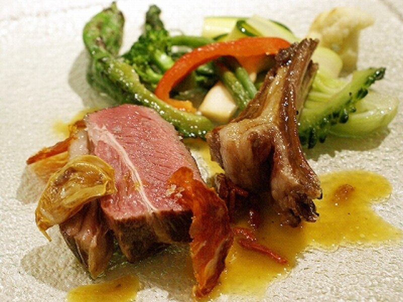 ・肉料理:仔羊ロースのロティ チョリソのソース