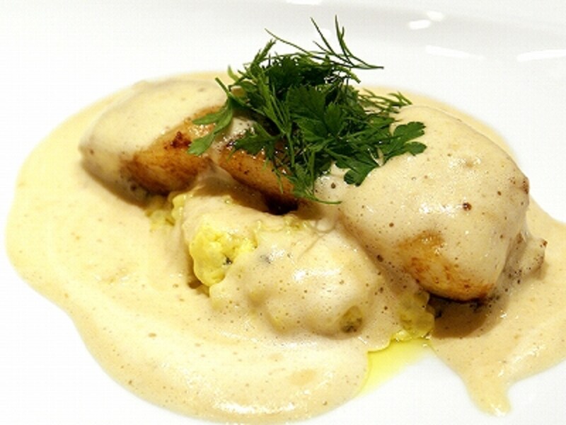 これまたシンプルかつオーソドックスな魚料理。ムニエルにすることで平目の旨みをカリッと閉じ込め、濃厚な白ワインソースと追いつけ追い越せの旨み合戦。全体としてパンチのある味になりすぎるところですが、魚の下にある、お米を入れたスクランブルエッグでバランスを取っています。