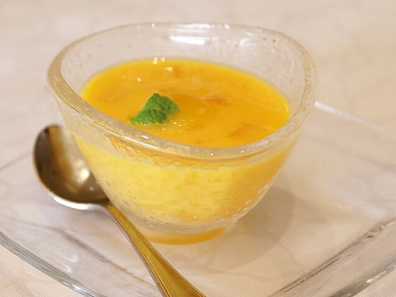 スイーツを愛する僕は、これまで数多くのマンゴープリンを食べてきましたが、その中でもこれはNo.1です。マンゴーの濃厚さと香り、そして食感のバランスが何よりも素晴らしい。果肉も入っていて、マンゴーをとことん味わえるデザートです。