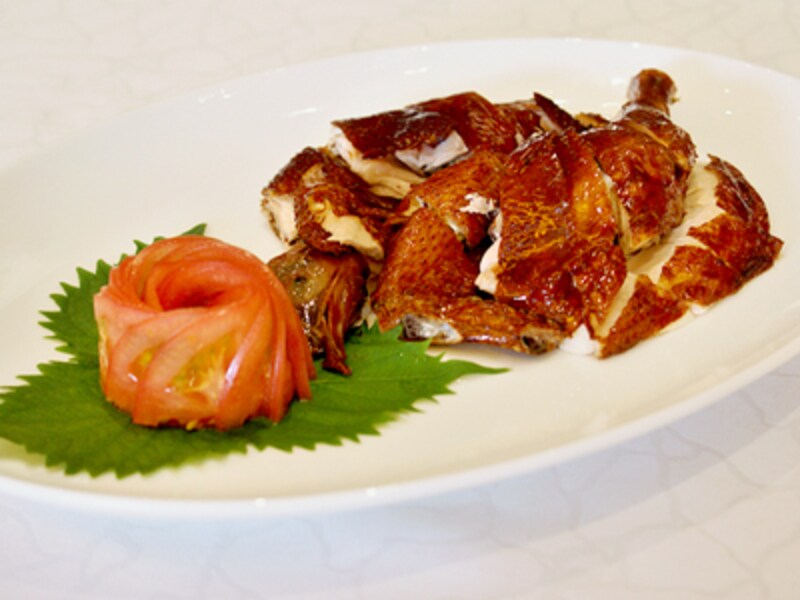 次のお料理は、こちらと北京ダックからのチョイスとなります。今回は「福臨門酒家」の肉のスペシャリテともいえるこちらを選びました。金鶏は、正確には龍崗鶏という鶏で、もともと中国・広東省の地鶏だったものを、福臨門がひな鳥を持ち込み、日本では各地の同店でしか味わえない鶏。