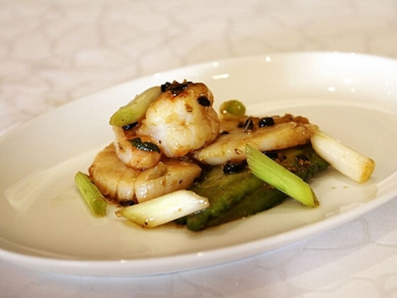 ぷりっぷりの海老が香ばしく、帆立のうまみと結びつきが素晴らしいコンビネーション。そこにアクセントとして苦瓜(ゴーヤ)を加えることで、味の輪郭をはっきりと保っています。漢方薬にも使われる苦瓜。「良薬、口に苦し」という諺と共に、中華料理が医食同源であることを思い出させてくれます。
