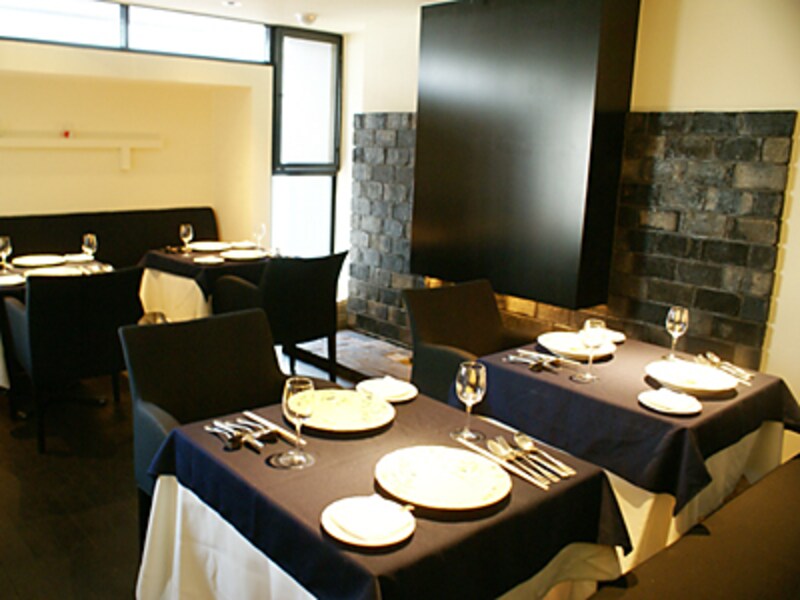 ・4Fはシックに4Fはモノトーンの内装に濃紺のクロスというカラーで、チェアーの形や全体の雰囲気はモダンでシックなダイニング。気合の入ったデートなんかにはこちらでしょう。同じダイニングでも、カジュアルな2Fと比べると席数も減り、何となくワクワク感が漂います。