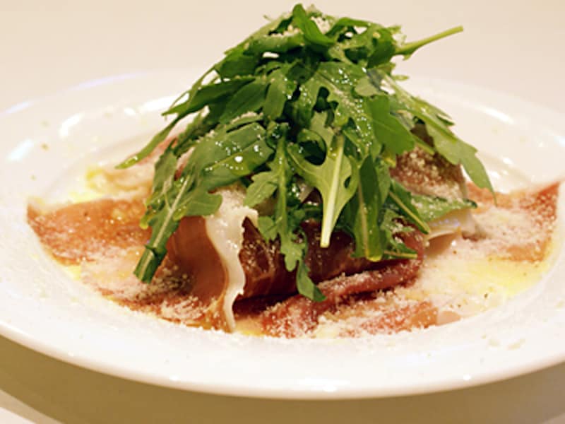 ほくほくのジャガイモの熱が、チーズと生ハムの脂を柔らかく溶かします。僕は生ハムを食べるとき、レストランでも自宅でも少し常温で置いてから食べるのですが、こうすると生ハムをよりおいしく食べられますね。