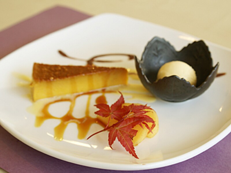 ・デザート:かぼちゃのプリン、クリームチーズのソルベ