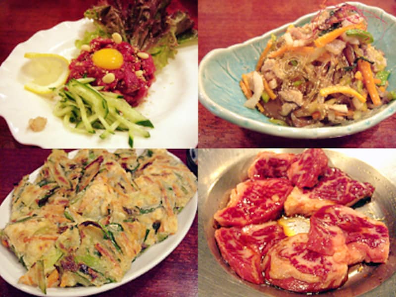 もちろん定番のユッケや(1,000円)、チャプチェ(季節野菜と春雨の炒め物)(500円)、チヂミ(600円)などのサイドメニュー、牛のハラミ タレ焼き(1,000円)など、野菜や豚意外のメニューも充実しています。