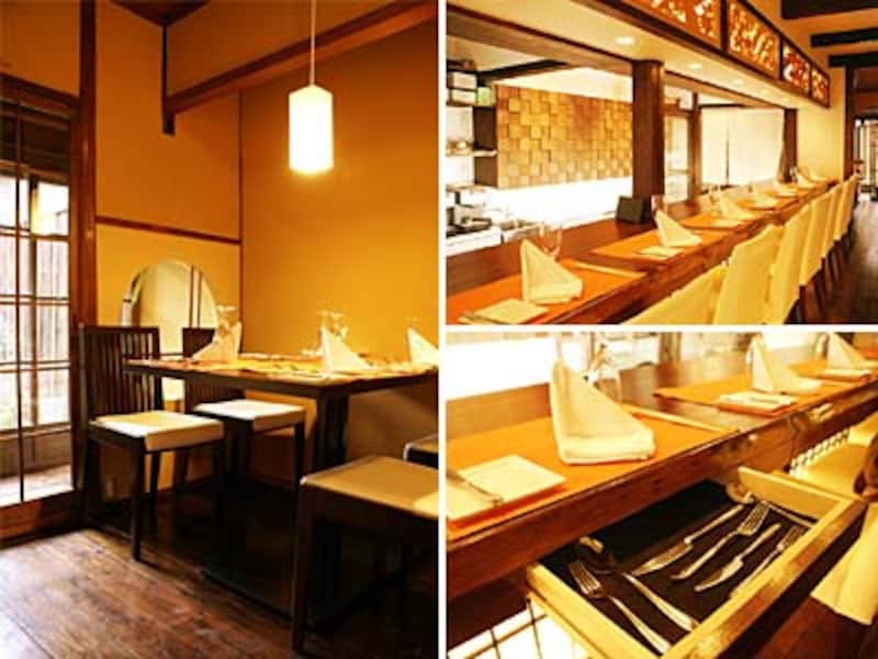 今回ご紹介するのは、京都・出町柳駅から西へ徒歩6分ほど。地元の方は散策に、観光の方もたくさん訪れる人気スポット、京都御苑の東側にあるフレンチレストラン「エピス」。07年の8月にオープンしたこちらは、築100年以上という町屋を改装し、町屋には珍しく耐震強度設計まで施しています。![]() |