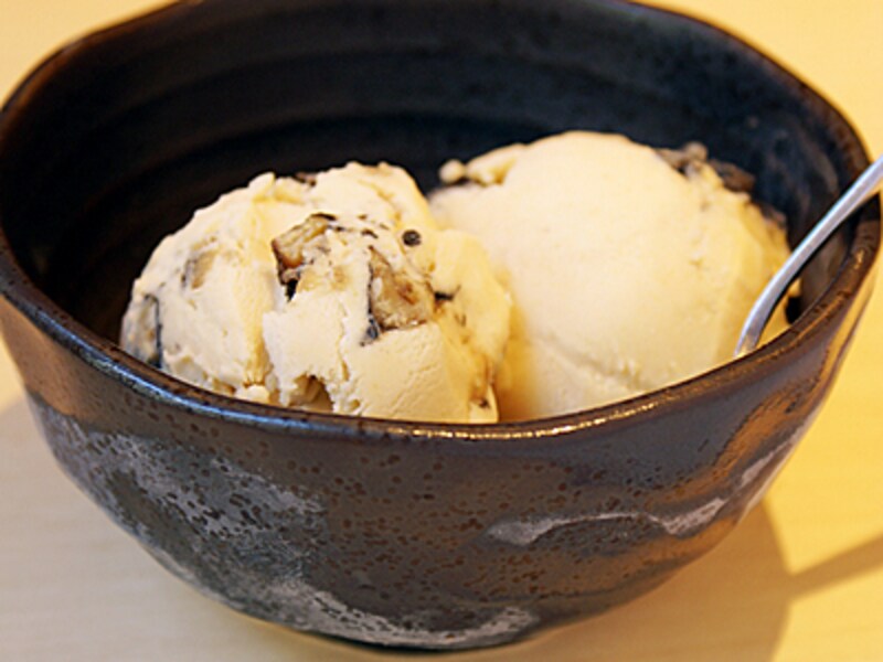 最後は黒豆ときなこアイス(420円)で締め。ねっとりとした食感のアイスに、黒豆がたっぷり。豆のシャープな歯ざわりが際立ちます。