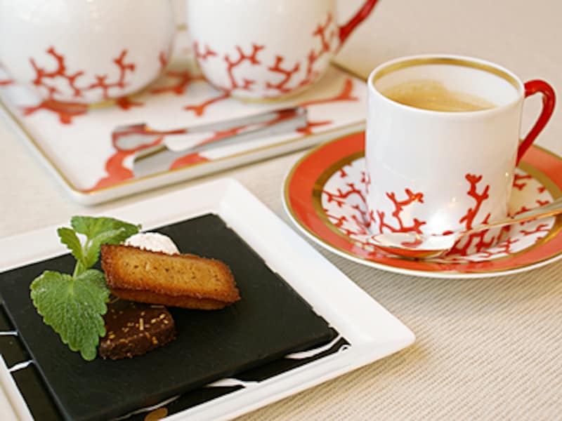 カップは、太陽と珊瑚をモチーフにしたレイノーのクリストバル。いまはまだ寒いですが、春になればテラスでティータイム、というのも良いでしょう。レイノーらしさを表す透明感ある白さが、陽の光に映えます。こういう小物使いにも、グランメゾンであろうという姿勢がしっかり見えます。楽しませてくれるのは、けして料理だけではありません。