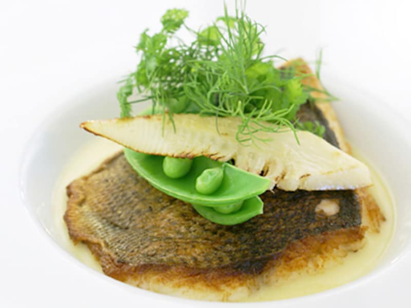 ・魚料理:高知産イサキのポワレ 昆布のバタークリームソース 国産筍添え