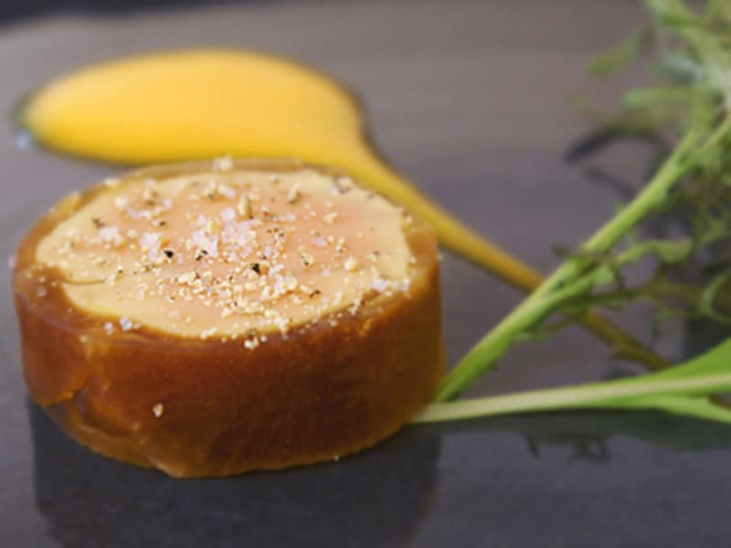 ソースはレモンビネガーで酸味をつけた卵黄と焦がしバターで。バターや卵黄のまったりとした食感にビネガーを加えた、コクのある酸味はフランス料理ならでは。見事に日仏が結実した料理です。