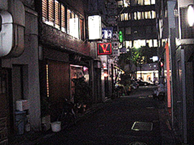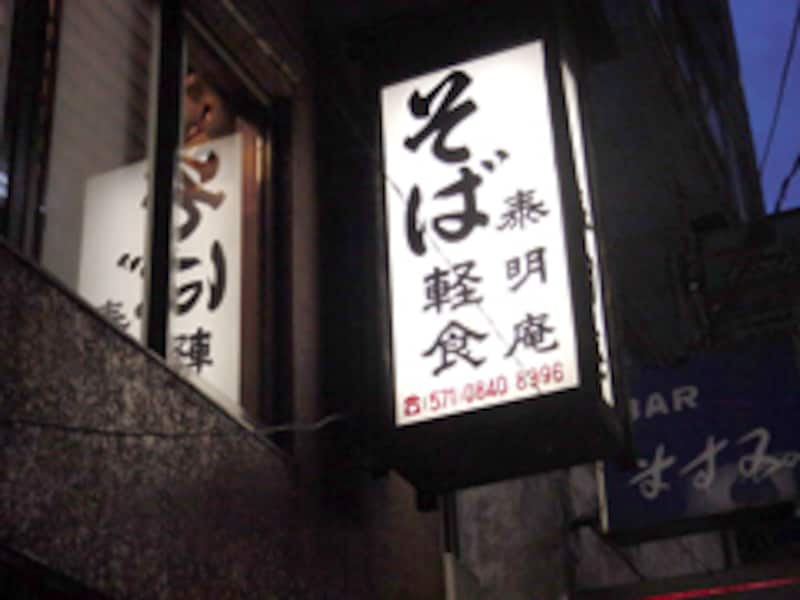 紅灯の巷。ま、そういったフレーズが脳裏をよぎる光景。居酒屋や東京古来(?)のそば屋が好きな人なら、DNAにピピッと反応してしまう絵柄だ。簡単なテスト。財布に3,000円の余裕があって、時間に60分程度の余裕があって、水では癒されない乾きをおぼえている午後6時。この看板を見つけてしまったあなたは、この店に入らずにやり過ごせますか?少くとも、私には不可能だ。