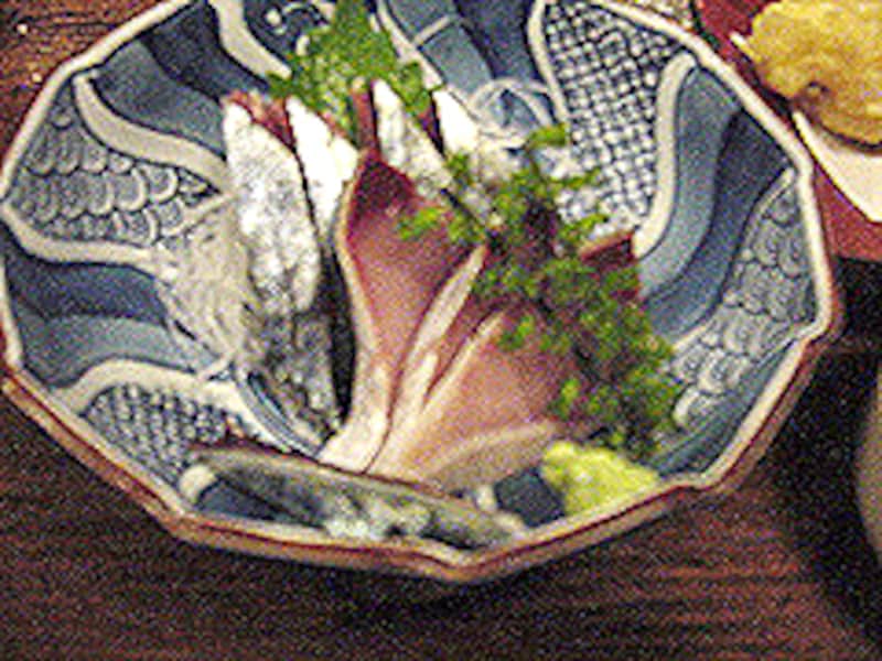 これから小洒落たBarに繰りだそうてえ肚なのに、旨い物を見つけてしまうとどうもいけません。こんどは旬の〆鯖を注文。昨今の真鯖の市場価格については誠に憂慮すべき相場がまかり通っているが、この店では我慢の値付けでお客様のフトコロを案じている。ええ嬉しいじゃあありませんか。かくして、またまた燗が進む。
