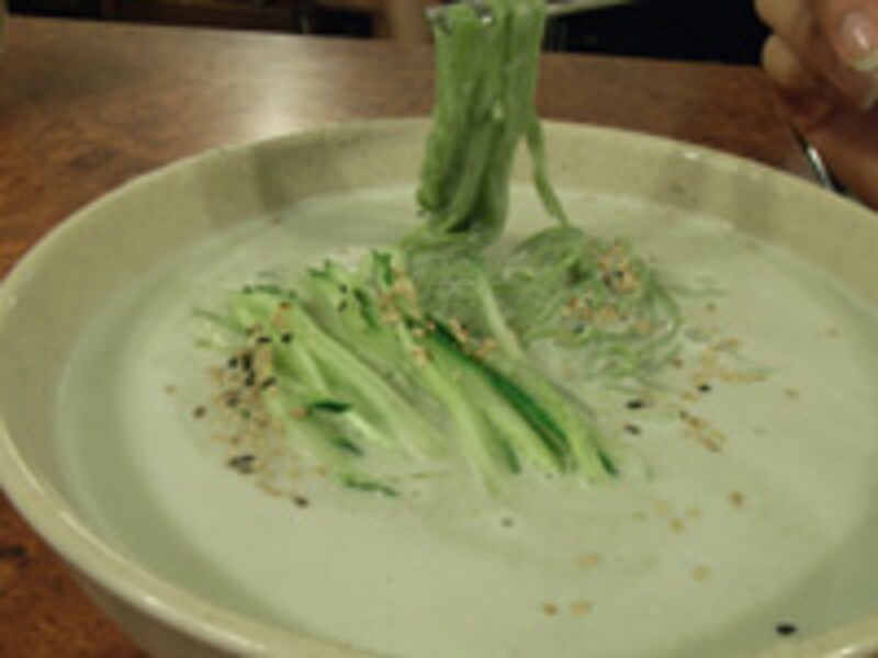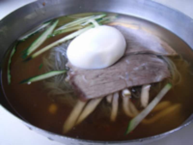 | 牛肉とエイの刺身のビビンネンミョン | 冷麺(ネンミョン)はあっさりした味わい |