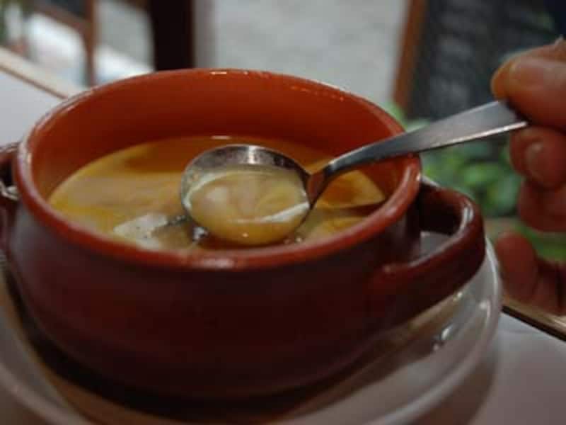 ニンジンのポタージュ。すみずみまで引き出されたニンジンの甘さをミルクが柔らかく包んでいます。この味が出せるのはニンジンに力があればこそ。天然酵母を使ったパンは、しっとりしていて、ムチムチと弾力のある食感を味わえます。噛み締める度に強くなっていく小麦の香り。